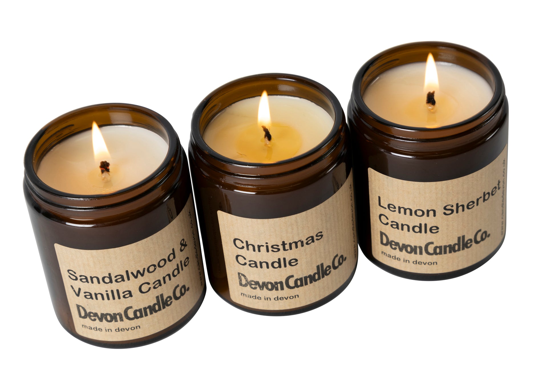 Our candles are hand poured in Devon and are made with pure soya or rapeseed oil blends. We use pure cotton wicks and natural essential oils or synthetic fragrances.
